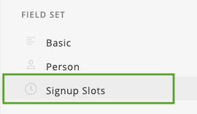 2. Locate and click Signup Slots from Field Sets. Please note: One type of Field Set can be added per Form.