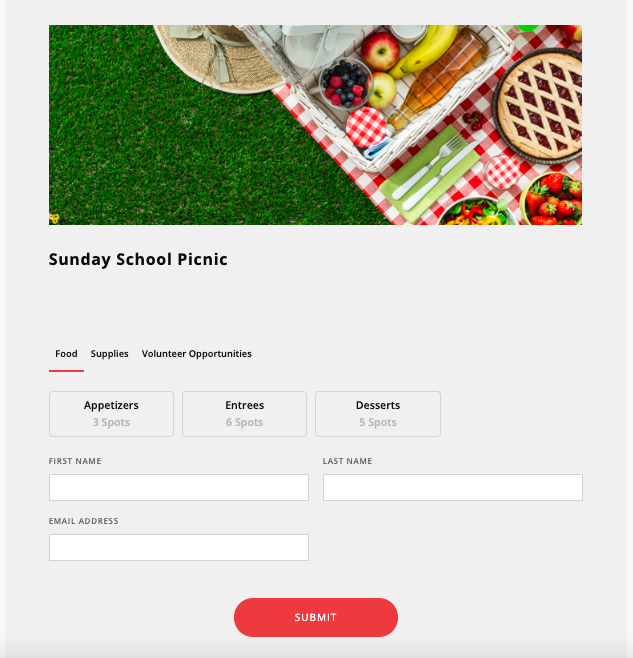 - Users can see signups: names of other spots filled will appear on form as they are claimed