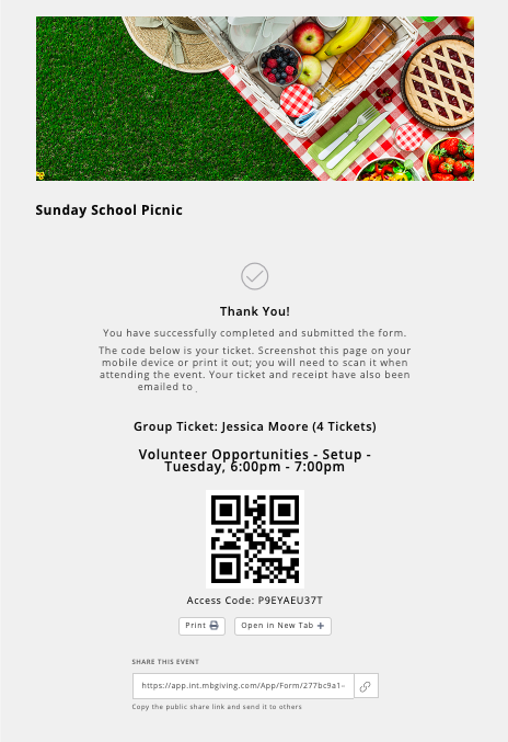 Once Ticketing has been enabled, tickets will automatically be sent to the email address provided by the registrant below their signup selection. Tickets can be previewed in Form Properties under the Email tab by clicking the eye icon.