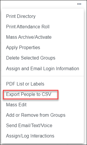 Use the Three-Dot Icon to start an Export Individuals to CSV from the dropdown.