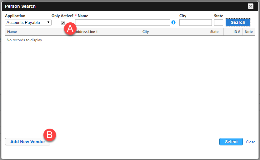 If you have previously set up your giving provider as a vendor, you can search in the new pop-up screen. If not, click on Add New Vendor to create them as a vendor.