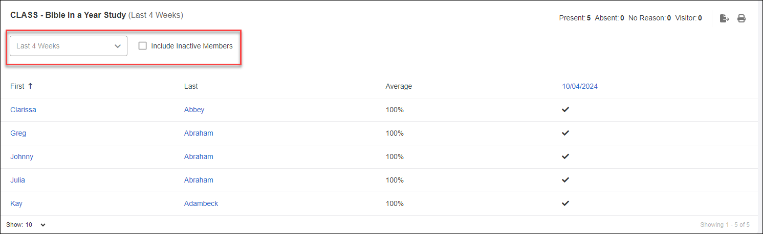 - Check the box to "Include Inactive Members" if desired.